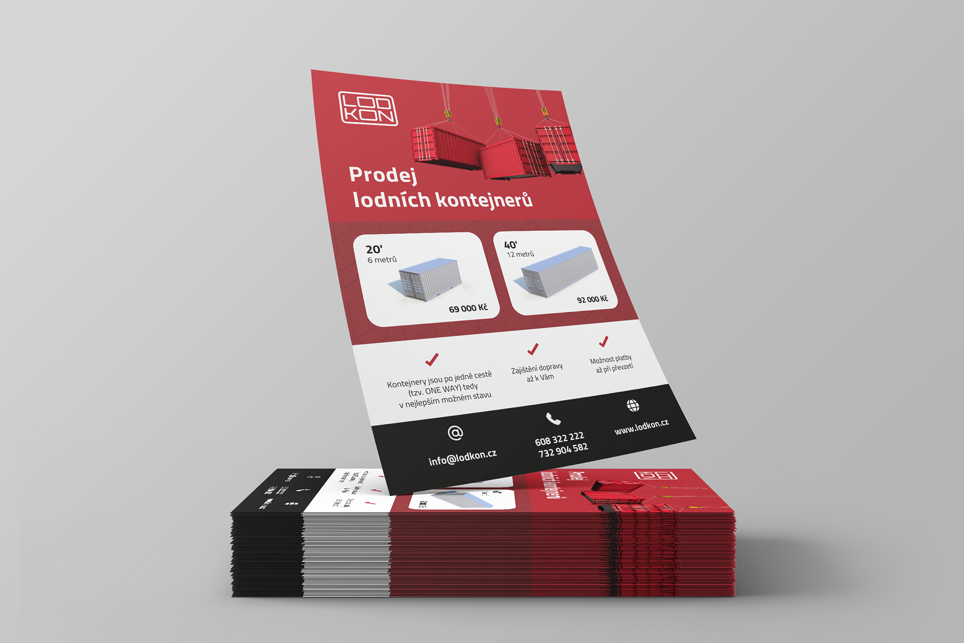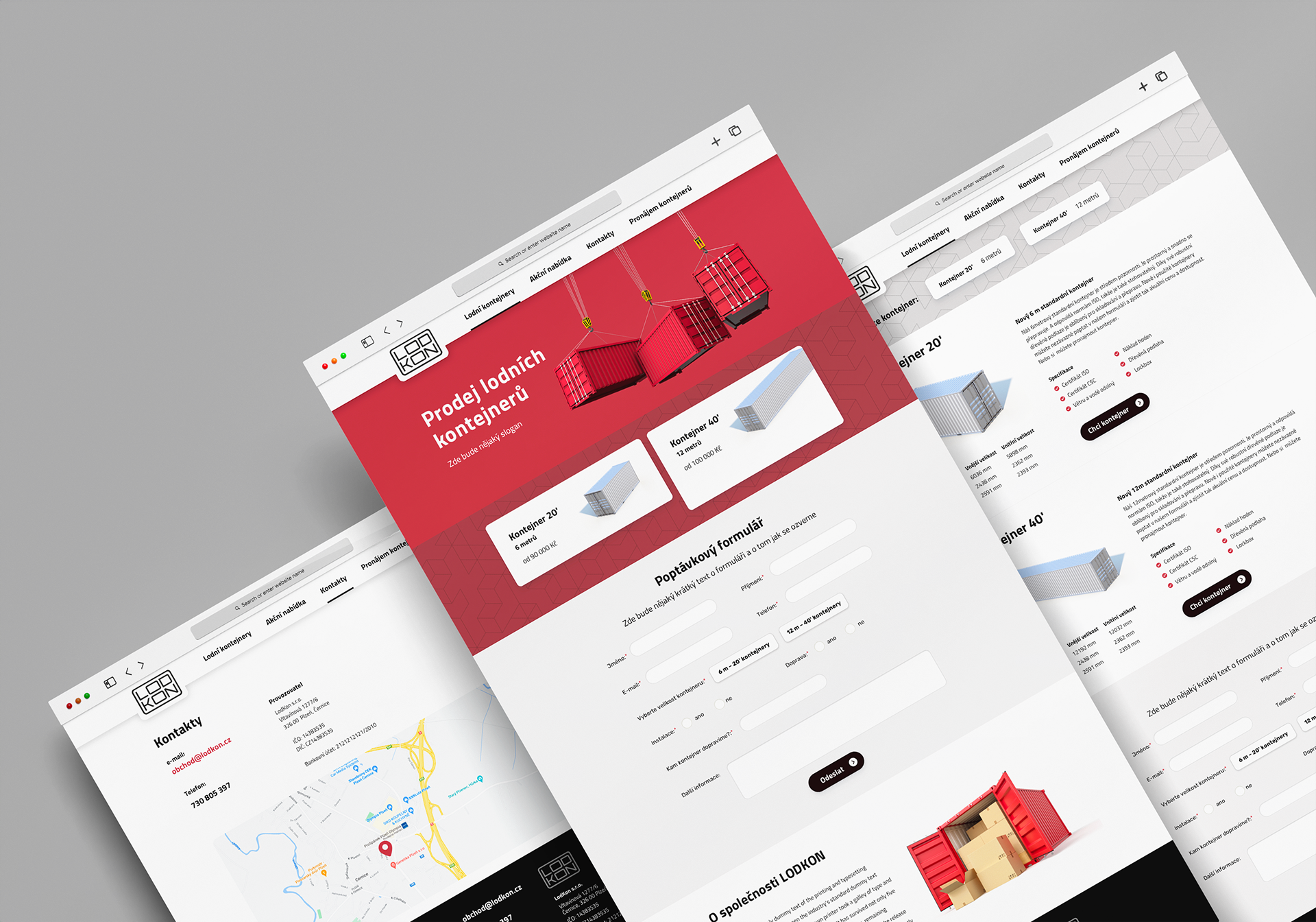 Návrh loga, webových stránek a letáku pro firmu prodávající lodní kontejnery.